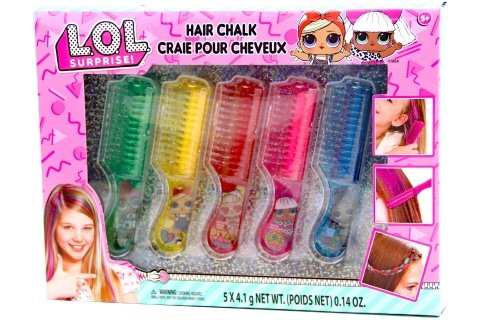 Křídy na vlasy s moticem oblíbených panenek L.O.L. Balení obsahuje 5 barevných kříd s hřebínky. Rozměry balení 26x19x2,5 cm. Doporučeno pro děti od 5 let