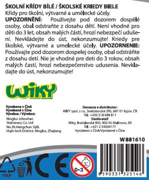 Bílé školní křídy. 12 ks v balení. Rozměr křídy: 8 x 1,1 cm.
