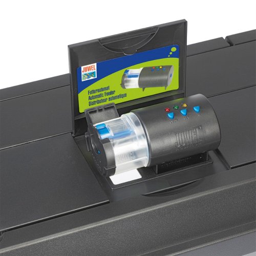 K umístění krmítka je třeba pouze vyříznout otvor do krycí klapky akvária, do kterého je pak možno nasadit nosnou misku pro krmítko. Nosná miska je konstruována tak, že obsahuje malou vyjímatelnou klapku, která uzavírá krycí otvor, pokud není krmítko v provozu.