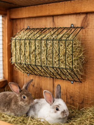 Závěsné jesle velké s bočním plněním sena pro králíky.