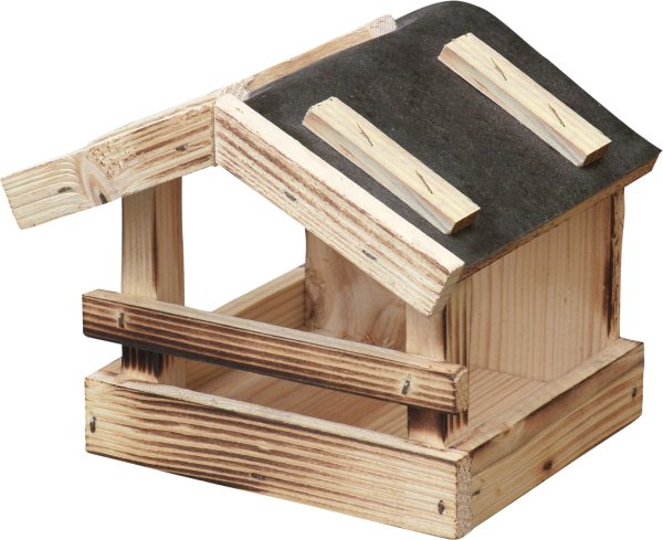Dřevěné krmítko určené pro přikrmování venkovního ptactva převážně v zimních měsících. Rozměry: 295 mm (š) x 223 mm (v) x 350 mm (h).