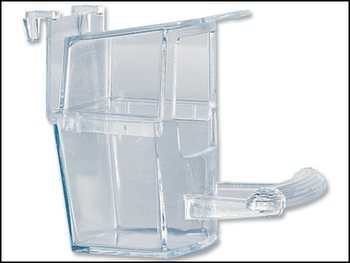 Plastové kryté krmítko s bidýlkem pro okrasné ptactvo.