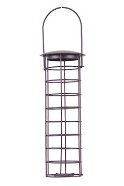 Závěsné kovové krmítko na 4 lojové koule, se stříškou. Dodáváno bez koulí.