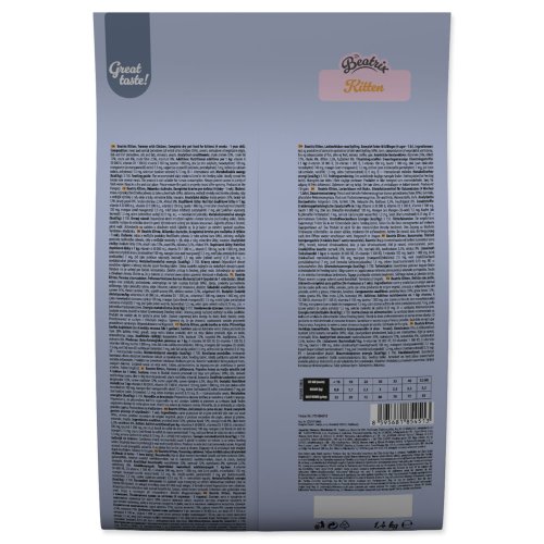 | Složení: | Maso a výrobky živočišného původu (z toho sušené kuře 38 %), obiloviny, vedlejší výrobky rostlinného původu, ryby a vedlejší výrobky z ryb, oleje a tuky, minerální látky, kvasnice. |