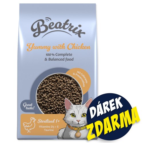 Krmivo Beatrix Sterilized s kuřecím 10kg+Kapsička Beatrix Adult s kuřecím 85g