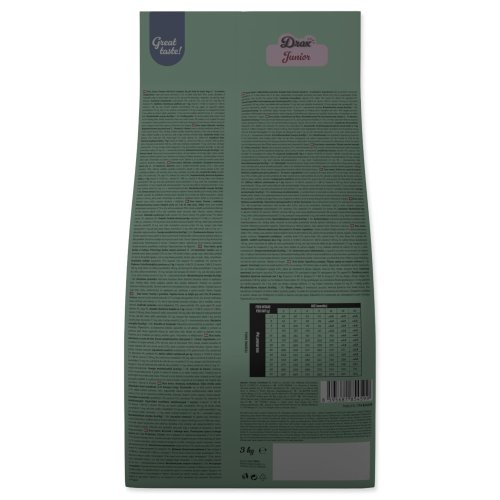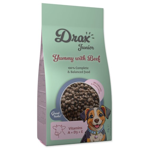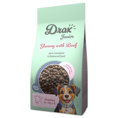 Postupně během 7–10 dní zvyšujte podíl Drax Junior a snižujte původní krmivo, aby si trávení zvyklo.