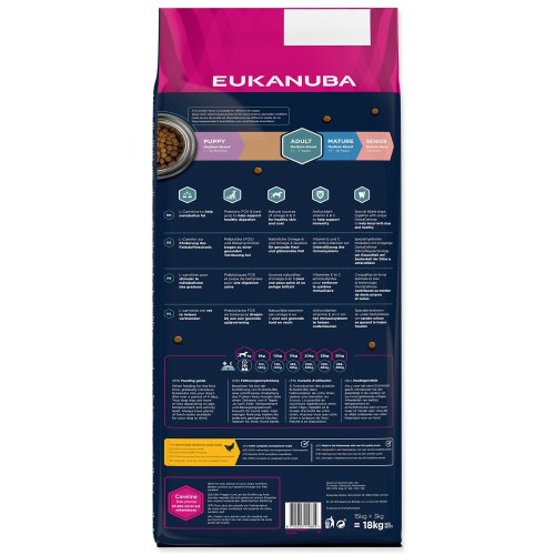 Receptura se zaměřením na konkrétní fázi života - pro středně velké aktivní dospělé psy od 1 roku do 7 let – poskytuje na míru upravenou výživu pro podporu štíhlých svalů a vyvážený příjem energie, které zajistí optimální tělesný stav vašeho dospělého psa. Naše jedinečná na míru upravená receptura pro středně velké dospělé psy obsahuje směs vlákniny, prebiotika FOS a řepné dužiny pro podporu zdravého zažívání, juku, která pomáhá snížit zápach ze stolice, přirozený zdroj mastných kyselin omega-6 a omega-3 pro zdravou kůži a srst, L-karnitin, který pomáhá s udržením váhy a antioxidanty vitamin E a C pro podporu imunitního systému. Naše unikátní granule ve tvaru šestiúhelníku s přídavkem DentaDefense také pomáhají s udržováním čistých a zdravých zubů. Pokročilá výživa pro středně velké dospělé psy se zaměřením na podporu optimálního tělesného stavu a celoživotní pohodu.