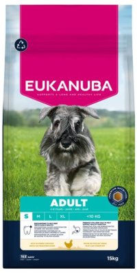 Složení: | Sušené kuřecí a krůtí (30 % včetně kuřecí 21 %, přirozený zdroj glukosaminu, chondroitinu a taurinu), čerstvé kuřecí (15 %), ječmen, pšenice, kukuřice, drůbeží tuk, čirok, oves, sušená řepná dužina (3,5 %), kuřecí šťáva, minerální látky (včetně hexametafosforečnanu sodného 0,35 %), sušená celá vejce, fruktooligosacharidy (0,38 %, přírodní prebiotikum). |