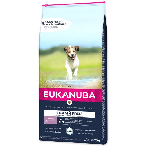 Eukanuba Grain Free* receptura pro štěňata malých a středních plemen s nízkým obsahem alergenů je pečlivě sestavená tak, aby krmivo neobsahovalo běžné alergeny. Šetrné složení představuje alternativu pro psy se zvláštními nutričními požadavky, která obsahuje nezbytné vitamíny a minerály na podporu zdravého růstu a vývoje.