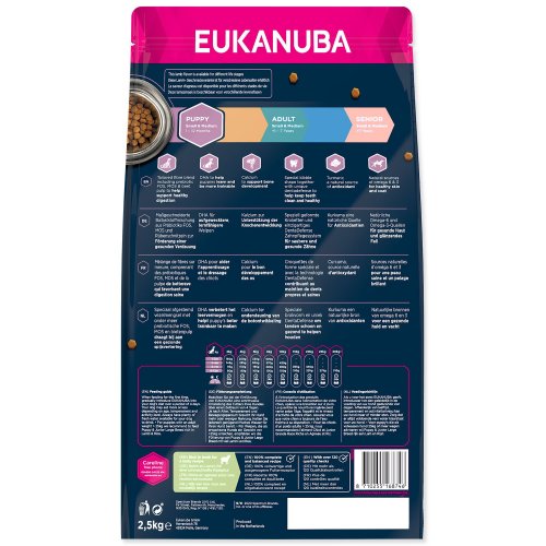 Naše nová a vylepšená receptura krmiva EUKANUBA speciálně vyvinutá pro rostoucí štěňata středně velkých plemen ve věku od 1 do 12 měsíců pomáhá speciální výživou ke zdravému růstu a vývoji vašeho štěněte.