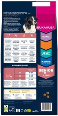 Složení: | Sušené kuřecí a krůtí (26 % včetně kuřecí 18 %, přirozený zdroj glukosaminu, chondroitinu a taurinu), čerstvé kuřecí (17 %), kukuřice, pšenice, drůbeží tuk, oves, rýže, ječmen, sušená řepná dužina (3%), kuřecí šťáva, minerální látky (včetně hexametafosforečnanu sodného 0,34 %), sušená celá vejce, fruktooligosacharidy (0,37 %, přírodní prebiotikum), mannanoligosacharidy (0,13 %, přírodní prebiotikum), glukosamin (z živočišné tkáně) (0,04 %), chondroitin sulfát (0,004 %). |
