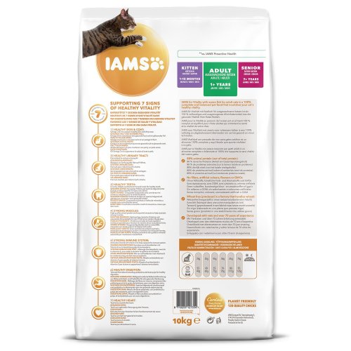Krmivo IAMS for Vitality pro dospělé kočky je 100% kompletní a vyvážené, odborníky sestavené krmivo, které bude vašemu zvířeti chutnat a svědčit. Naše nová a vylepšená receptura pro dospělé kočky s mořskými rybami je založena na kvalitních živočišných bílkovinách pečlivě vybraných tak, aby podporovaly sedm znaků zdravé vitality kočky. Aby byly kočky zdravé, aktivní a plné energie, obsahují naše lahodné receptury až 88 % živočišných bílkovin (z celkového obsahu bílkovin).
