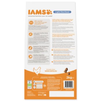 Naším závazkem je nabídnout kočkám specializované krmivo se skvělou chutí, které si váš domácí mazlíček bezvýhradně zamiluje a které bude podporovat všech sedm znaků zdravé vitality. Oproti našemu běžnému krmivu IAMS pro dospělé kočky s čerstvým kuřecím masem obsahuje tato receptura o 30 % méně tuku, takže lépe pomáhá udržet zdravou hmotnost.