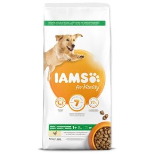 Krmivo IAMS for Vitality pro dospělé psy velkých plemen je 100% kompletní a vyvážené, odborníky sestavené krmivo, které bude vašemu zvířeti chutnat a svědčit. Naše nová a vylepšená receptura pro dospělé psy s čerstvým kuřecím masem je založena na kvalitních živočišných bílkovinách, které byly pečlivě vybrány, aby podporovaly sedm znaků zdravé vitality psa. Aby byl váš pes zdravý, aktivní a plný energie, obsahují naše lahodné receptury až 77 % živočišných bílkovin (z celkového obsahu bílkovin).