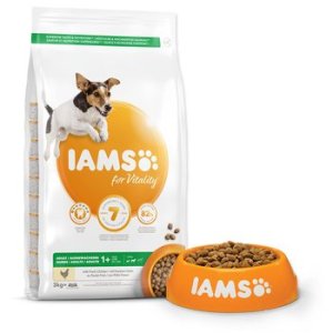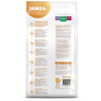 Krmivo IAMS for Vitality pro dospělé psy malých a středních plemen je 100% kompletní a vyvážené odborníky sestavené krmivo, které bude vašemu zvířeti chutnat a svědčit. Naše nová a vylepšená receptura pro dospělé psy s čerstvým kuřecím masem je založena na kvalitních živočišných bílkovinách, které byly pečlivě vybrány, aby podporovaly sedm znaků zdravé vitality psa. Aby byl váš pes zdravý, aktivní a plný energie, obsahují naše lahodné receptury až 82 % živočišných bílkovin (z celkového obsahu bílkovin).