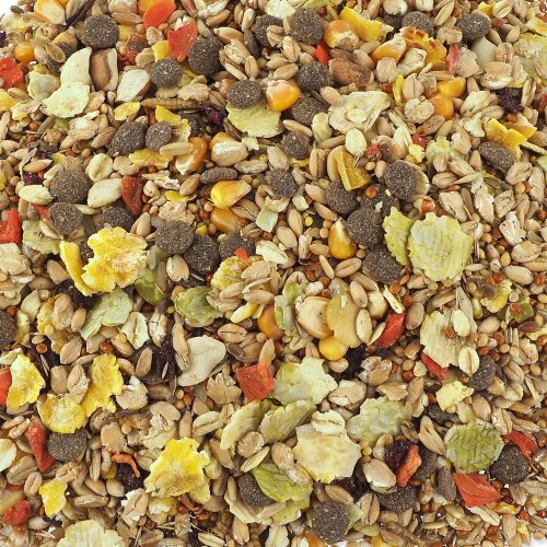 Složení: pšeničné vločky, proso mana, proso la plata 14 %, kukuřice 9 %, hrachové vločky 7 %, pšenice, kukuřičné vločky, ovesné vločky, zelenina (sušená mrkev, sušená červená řepa), semena travin, arašídy, rýže, maso (sušené hovězí 0,9 %, sušené kuřecí 0,9 %, sušené ryby), extrudovaná kukuřičná mouka, lněné semeno, špalda, oves, sušení mouční červi.