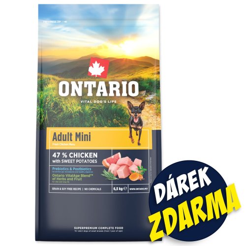 Krmivo Ontario Adult Mini Chicken 6,5kg+ 3 konzervy 200g ZDARMA