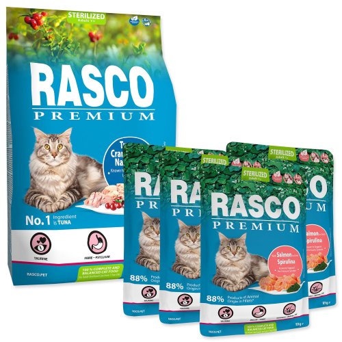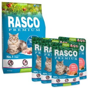 Krmivo Rasco Premium Sterilized tuňák s brusinkou a lichořeřišnicí 2kg+Krmivo 0,4kg ZDARMA