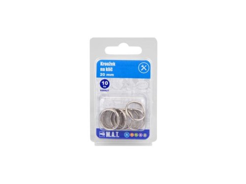 průměr: 20 mm materiál: Ni 10 ks Kroužek na klíče 20 mm je pomocník pro skladování většího množství klíčů, lze použít i k zavěšení různých ozdob a přívěsků.