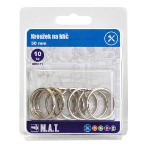 průměr: 30 mm materiál: Ni 10 ks Kroužek na klíče 30 mm je pomocník pro skladování většího množství klíčů, lze použít i k zavěšení různých ozdob a přívěsků.