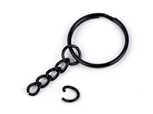 Kroužek na klíče Ø25 mm s řetízkem - černý lak (100 ks)