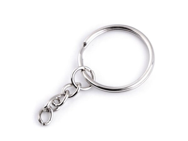 Kroužek na klíče Ø25 mm s řetízkem - nikl (100 ks)