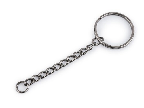 Kroužek na klíče Ø25 mm s řetízkem - nikl černý (10 ks)