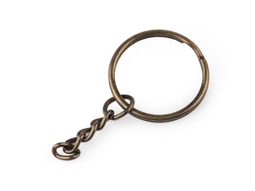 Kroužek na klíče Ø25 mm s řetízkem - staromosaz (100 ks)