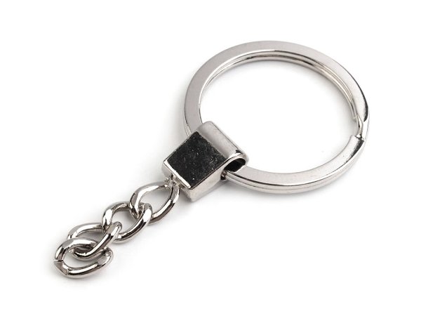 Kovový kroužek využijete na klíče nebo různé přívěsky. Je k němu připevněný řetízek (dlouhý 37 mm), na jehož konec můžete připnout karabinku.