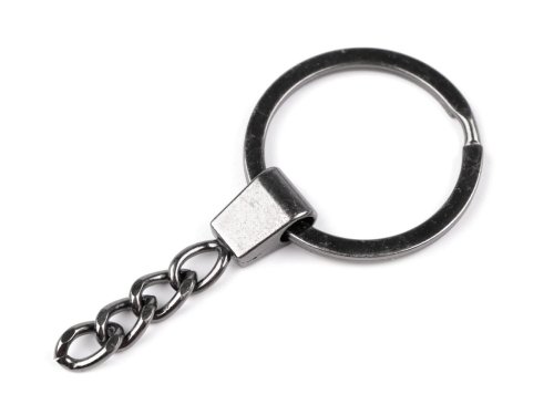 Kroužek na klíče Ø30 mm s řetízkem, plochý - nikl černý (5 ks)