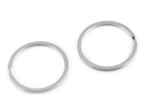 Kroužky na klíče z bižuterního kovu s galvanizací. Vnější průměr mají 35 mm, vnitřní průměr mají 30 mm. Jejich síla je 2,4 mm. Z profilu jsou ploché. Můžete je použít nejen na klíče, ale také k výrobě různých přívěsků na kabelku, tašku, batoh apod.
