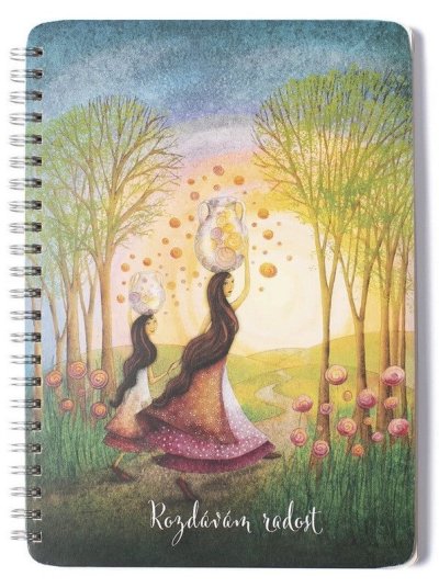 Edice Duhová kočka, formát A5, čistý (bez linek), 50 listů, kroužková TWIN WIRE vazba, speciální knižní papír (Holmen book), motiv Rozdávám radost. br brPoznámkové bloky z edice Duhová kočka vznikly spoluprací společnosti BOBO a ilustrátorky Lucie Ernestové. Praktický kroužkový zápisník formátu A5 s motivem Život mě baví. Inspiruje Vás k lapání nápadů, které poletují všude kolem. br brBOBO Kroužkový blok, A5 br• Krásná barevná obálka s ilustrací od Lucie Ernestové br• Vysoká gramáž papíru br• Krémový Holmen Book papír br• 50 nelinkovaných listů br• Zadní obálka z tvrdého kartonu pro stabilní zápis br• Svázáno kroužkovou vazbou TWIN WIRE v horní vazbě br• Formát zápisníku je A5, tedy 14 x 21 cm br brLucie Ernestová brJsem ilustrátorka, grafička a máma dvou kluků. Vymýšlím a vydávám hry šité na míru dětskému humoru a fantazii a také poznámkové bloky v kroužkové vazbě. Kreslím inspirační obrázky na důležitá životní témata, která se objevují i na obálkách zápisníků, bloků nebo například Vymalovánek. Obrázky se stávají zrcadlem našich vlastních postojů a odrazovým můstkem pro zajímavé rozhovory. Jsou bezpochyby vhodným pomocníkem pro všechny moudré rodiče a učitele, kterým se mohou stát průvodci jejich vlastními pohledy na svět. br brHolmen Book papír brJedná se o speciální knižní papíry, který se skvěle hodí na psaní a kreslení. Díky krémovému vzhledu je příjemnější na práci než klasický bělený papír. Holmen Book papír je sice dřevitý, ale papír má hned několik certifikátů, které zaručují ekologicky šetrný papír vůči přírodě - FSC®, PEFC™ a EU Ecolabel. br brTWIN WIRE vazba brTWIN WIRE vazba je nejdokonalejší způsob použití spirály v knihařské vazbě. Umožňuje snadné otáčení listů až o 360° bez vzájemného posunutí stránek. Blok můžete nechat otevřený na zvolené stránce a samovolně se nezavře narozdíl od šitých vazeb.