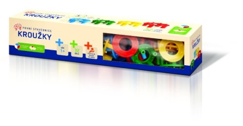 První stavebnice - Kroužky obsahuje 32 dílků – kroužků ve 4 barvách. Je vhodná již pro nejmenší děti od 1 roku. Pomáhá jim procvičovat cit v prstíkách a poznávat základní barvy.