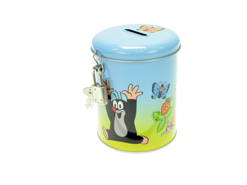 Za penízky se dá koupit tolik věcí, to ví přece každé malé dítě. Ale kam s nimi, aby se rychle nerozkutálely a hlavně, aby byly v bezpečí? Plechová pokladnička s Krtečkem je bude střežit jako poklad. Zamknou se na zámek a klíčky se musí dobře schovat. Hlavně hodně daleko od zvědavých ručiček, které by pokladničku vybraly dřív, než bude úplně plná. Rozměry balení 12 x 14 x 8 cm. Vhodné pro děti od 3 let.