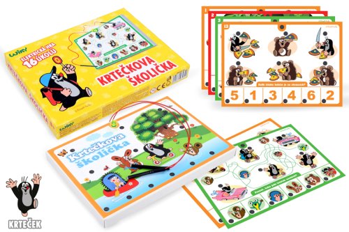 V elektronické hře Školička mají děti za úkol odhalovat souvislosti mezi obrázky a propojovat je vodivým drátkem. Každý list je zaměřen na určitou oblast dětského světa. Hra rozšiřuje vědomosti, vyžaduje postřeh, nutí děti všímat si vztahů mezi předměty, porovnávat je podle určitých vlastností a přiřazovat odpovídající předměty k sobě, bez nutnosti umět číst, neboť listy neobsahují žádné texty. Správnou odpověď na otázku signalizuje rozsvícené zelené světélko elektronického obvodu. Po výběru otázky dítě zvolí odpověď a její správnost si ověří tak, že se dotkne jedním testovacím kolíkem kontaktní plošky u otázky a druhým kolíkem plošky u odpovědi. Pokud je odpověď správná, rozsvítí se zelené světélko. Na baterie 2 x AA, nejsou součástí balení. Obsah balení: sada 16 výměnných listů se 176 obrázky Rozměr balení: 22 x 16 x 3 cm Vhodné pro děti od 3 let