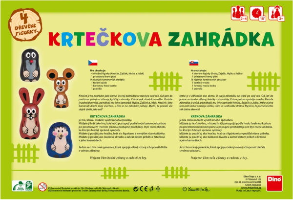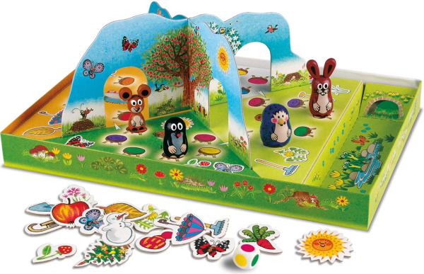 Krtečkova zahrádka je hra, kde hráči postupují podle hodu barevnou kostkou po prostorovém herním plánu a postupně procházejí čtyři roční období, ke kterým hledají správné symboly. Věk: 3+