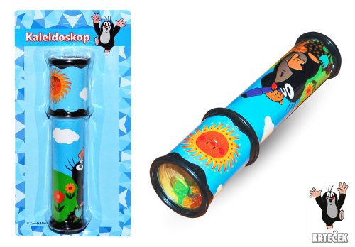 I Krteček chce vidět svět barevný. Kaleidoskop neboli krasohled, je dětská hračka, která pomocí soustavy zrcadel a barevných tělísek vytváří neopakovatelné obrazce při pohledu proti světlu. Kaleidoskop s motivem Krtečka si děti přímo zamilují. Rozměry balení 14 x 28 x 3 cm. Vhodné pro děti od 3 let.