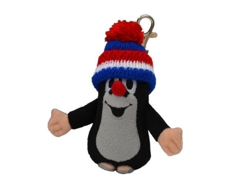 Plyšový přívěsek na kovové karabině. Krteček s kulichem v barvě trikolóry modré. Ruční praní.Doporučený věk: od 1 roku.