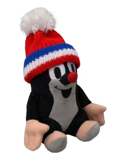 Plyšový Krteček v dárkové krabičce se sundavací čepicí v barvě trikolory. Praní na 40°C, sušení max. 50°C.Pro děti bez omezení věku.