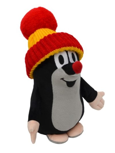 Mikro-plyšový Krteček se sundavací čepicí v barvě červeno-žluté, ve spodní části naplněn fazolkami, rozvíjející hmatové schopnosti dítěte. Pratelný. Rozměry balení 10 x 16 x 8 cm. Vhodné pro děti od 0 měsíců.