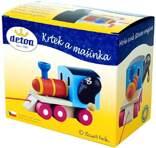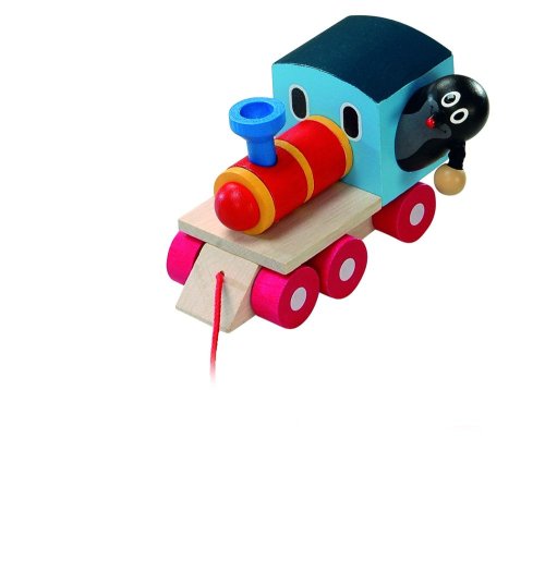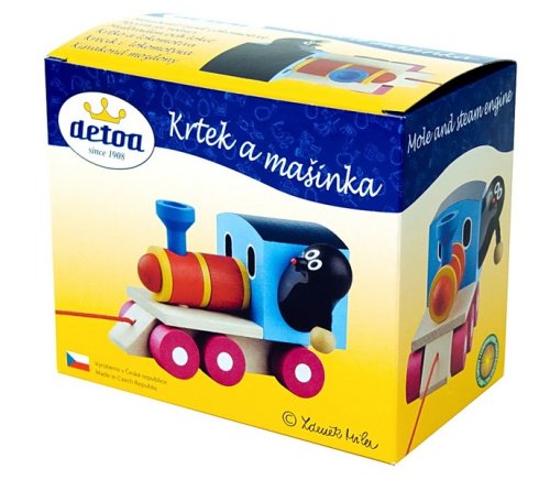 Tahací dřevěná mašinka s krtečkem jako strojvedoucím. Nevhodné pro děti do 3 let. Obsahuje malé části. Výrobek je zdravotně nezávadný.