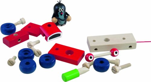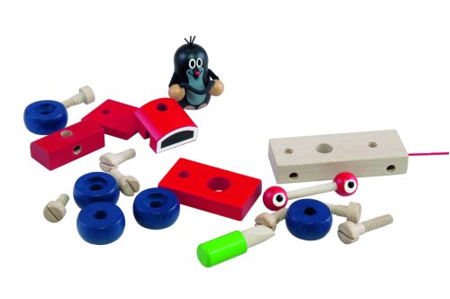 Dřevěné montážní auto s Krtkem, které při pohybu mrká. Lze ho rozložit a opět složit. Baleno v krabici z tvrdého papíru. Nevhodné pro děti do 3 let. Obsahuje malé části. Výrobek je zdravotně nezávadný.