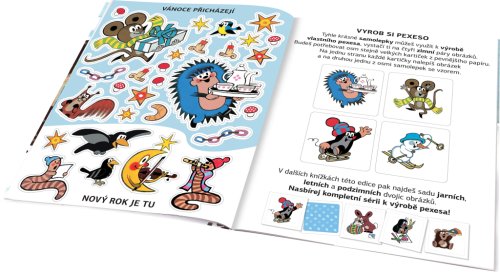 Kdo by neznal krtka – nejroztomilejšího kresleného pohádkového hrdinu na světě? Vydejte se spolu s ním objevovat kouzlo ročních období na krásných obrázcích geniálního výtvarníka Zdeňka Milera! Dvoustránkové scenerie mohou děti dolepovat spoustou roztomilých samolepek, ať už podle zadání, anebo podle vlastní fantazie. V knížce se kromě toho dozvědí mnoho nového a zajímavého o zimě a za pomoci samolepek si také mohou vyzdobit vlastní obrázek, pokojíček nebo vyrobit pexeso!