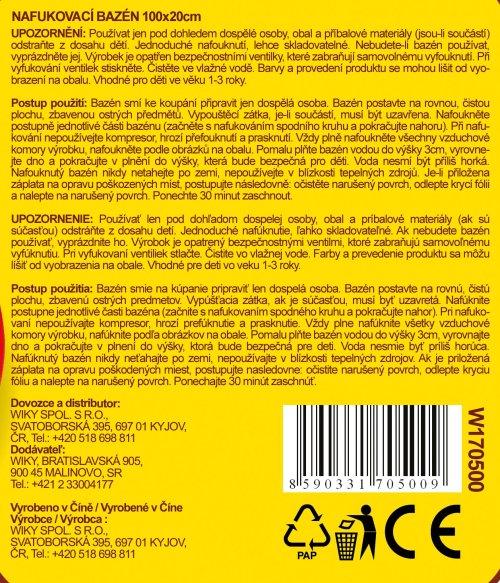 Hurá za letní zábavou s Krtečkem! A co že to Krtečka nejvíce baví? No jasně, přeci koupání. Dětský nafukovací bazén s motivem Krtečka zabaví děti v horkých letních dnech na zahradě nebo třeba na terase. Rozměr: 100 x 20 cm