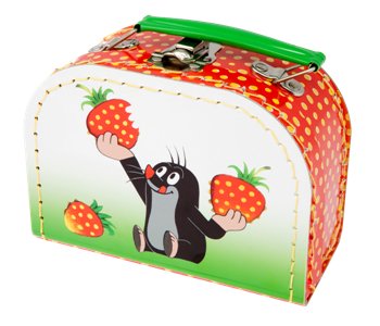 Šitý kufřík s motivem Krtka a jahody je vhodný například na uschávání hraček.Velikost 16x12x8 cm.