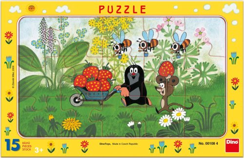 Deskové puzzle s motivem Krtečka na výletě obsahující 15 dílků. Velikost složeného obrázku je 25 x 14,5 cm. Vhodné pro děti od 3 let.