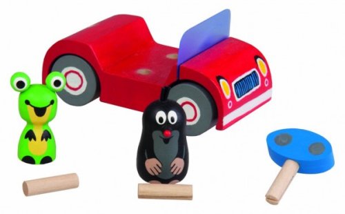 Krteček s kamarádkou Žabkou se vydali na výlet v červeném autíčku. Figurky i klíček lze libovolně vyndávat a prohazovat. Velikost: 5 x 5 x 11 cm, v krabičce. Vhodné od 3 let.