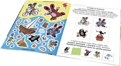 Kdo by neznal krtka – nejroztomilejšího kresleného pohádkového hrdinu na světě? Vydejte se spolu s ním objevovat kouzlo ročních období na krásných obrázcích geniálního výtvarníka Zdeňka Milera! Dvoustránkové scenerie mohou děti dolepovat spoustou roztomilých samolepek, ať už podle zadání, anebo podle vlastní fantazie. V knížce se kromě toho dozvědí mnoho nového a zajímavého o létě a za pomoci samolepek si také mohou vyzdobit vlastní obrázek, pokojíček nebo vyrobit pexeso!