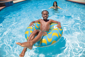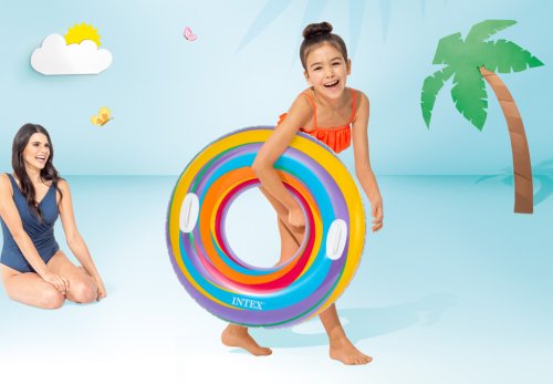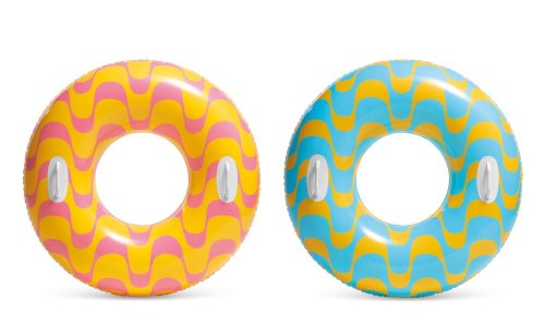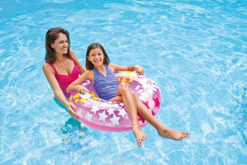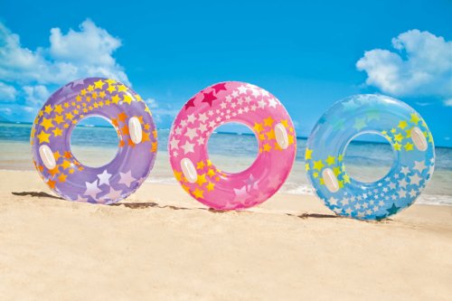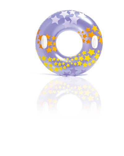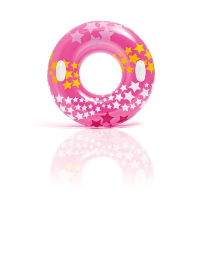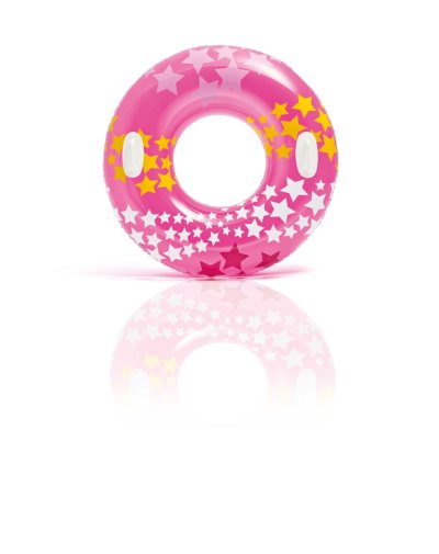 Nafukovací kruh na plavání pro děti na vodu se vzorem hvězdiček a se dvěma pevnými madly. Rozměr 91 cm. Vhodné pro děti od 9 let.