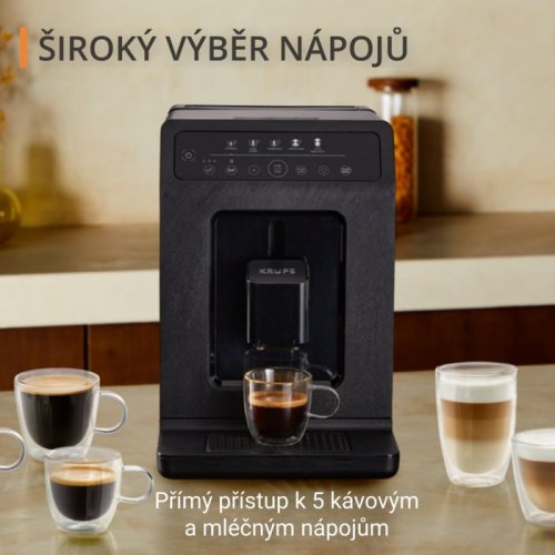 Automatický kávovar KRUPS Evidence Eco EA8968E0 vám přinese zážitek z prémiové kavárny přímo do vašeho domova. Tento špičkový plně automatický kávovar s pokročilou technologií Quattro Force připraví až 5 druhů kávy přesně podle vašich preferencí. Díky napěňovači mléka a systému one-touch cappuccino si vychutnáte dokonalé mléčné nápoje se sametovou pěnou.